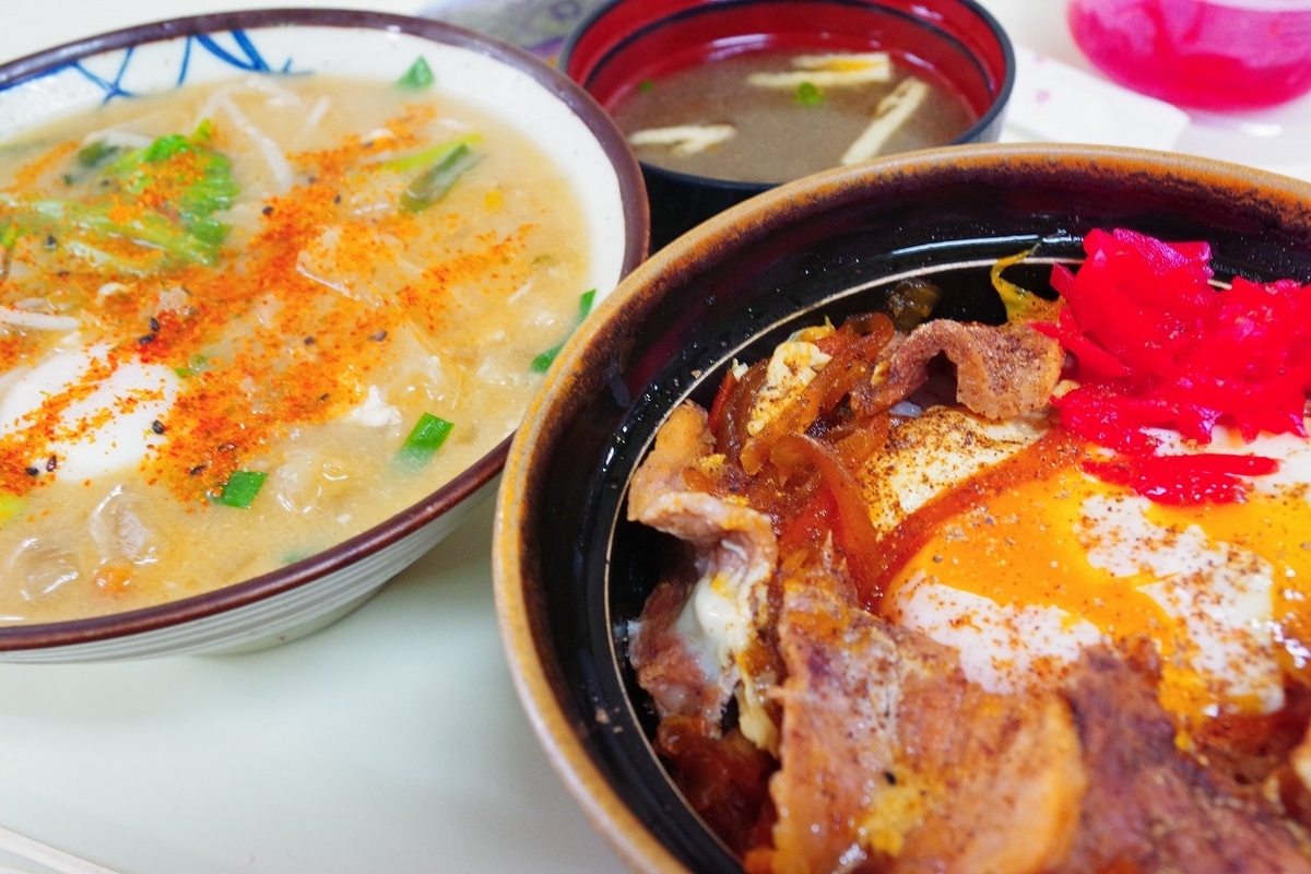 具だくさんの豚汁でした。でも、いわゆるの豚汁には入らないような野菜がたっぷり入っていて美味しかったです。これに親子丼(豚肉)も注文して、豚三昧しました。